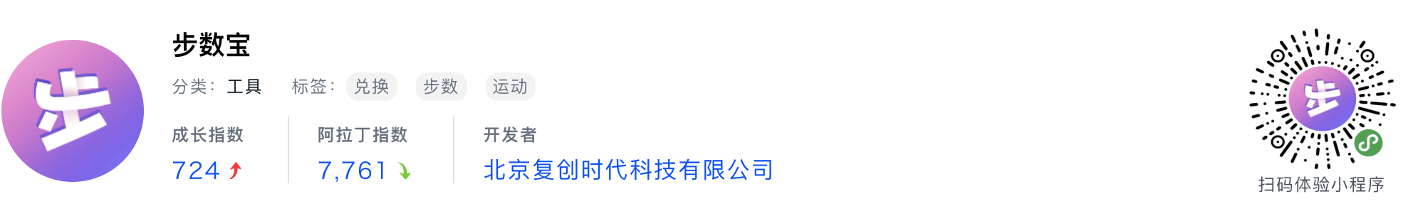 WeChatミニプログラム最新ランキングTOP20【2019年6月版】14位 :步数宝