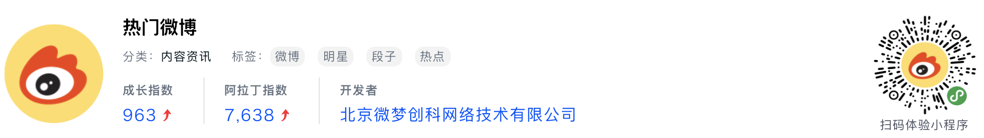 WeChatミニプログラム最新ランキングTOP20【2019年6月版】18位 :热门微博