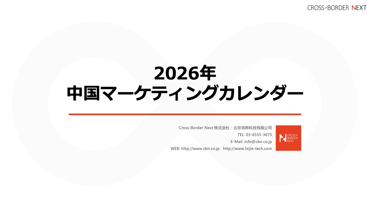 【保存版】2026年中国マーケティングカレンダー2026年の中国マーケティングプランを作成するための資料として2026年最新版中国マーケティングカレンダーを作成しました。 無料で配布していますので、ぜひお手にとって2026年の中国プロモーションにご活用ください。 ダウンロード資料にご関心をお持ちいただきありがとうございます。 ご入力いただいたメールアドレスに、資料のURLを送付いたします。 メールが届かない場合は、入力いただいたメールアドレスが間違っているか、 迷惑メールフォルダに振り分けられている可能性がありますのでご確認くださいませ。お名前会社名メールアドレス電話番号 最新海外マーケティングNews Letterの無料購読を希望しますか?希望する希望しないプライバシーポリシーに同意するREDプロモーション(KOL/KOC)資料